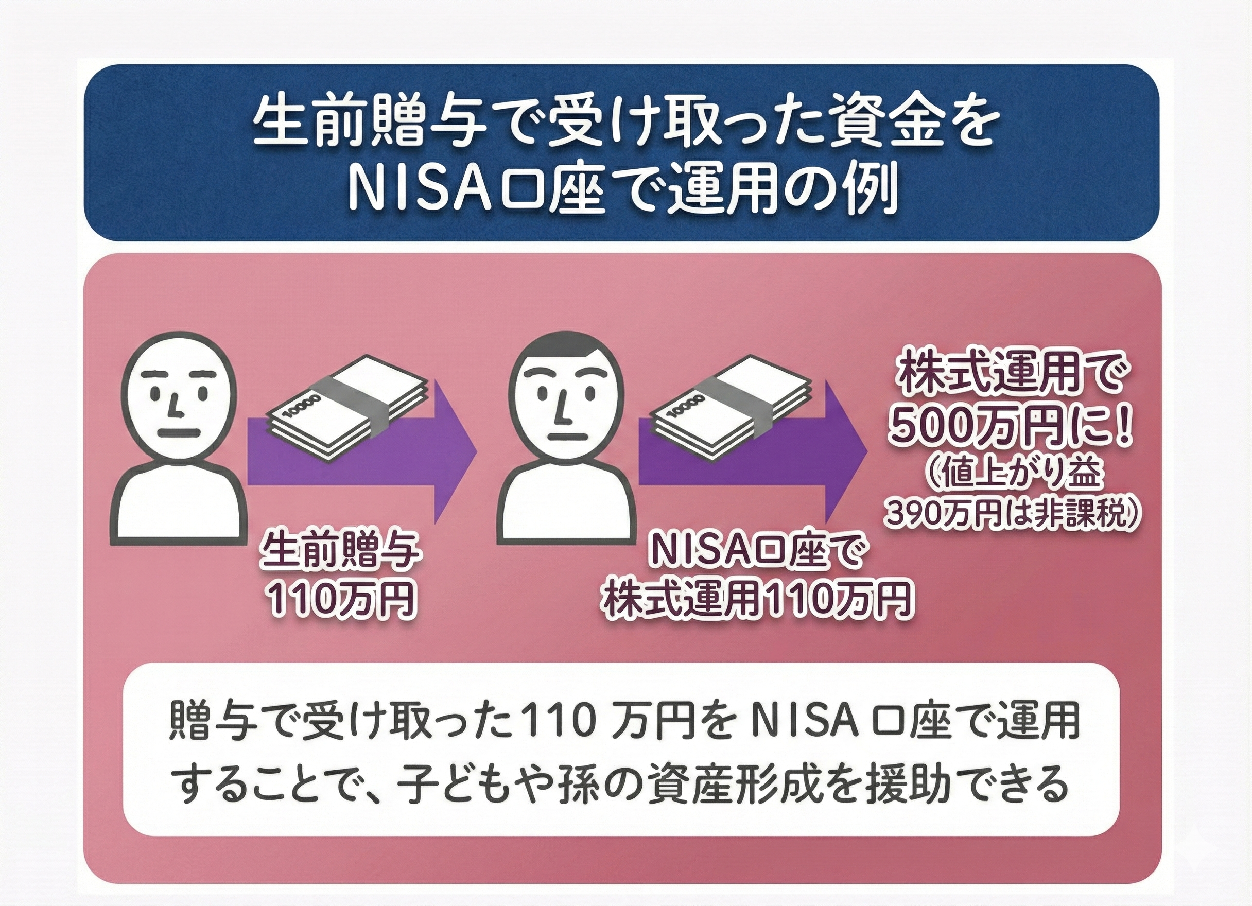 効果的な使い方として、相続人から家族への生前贈与でNISA運用は効果的です。